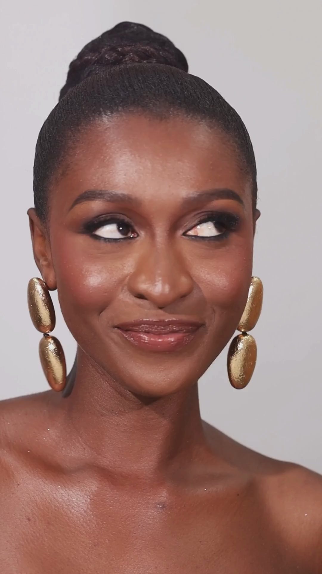A pair of statement stud earrings made of acrylic and champagne gold foil. Handmade in Ghana with love.