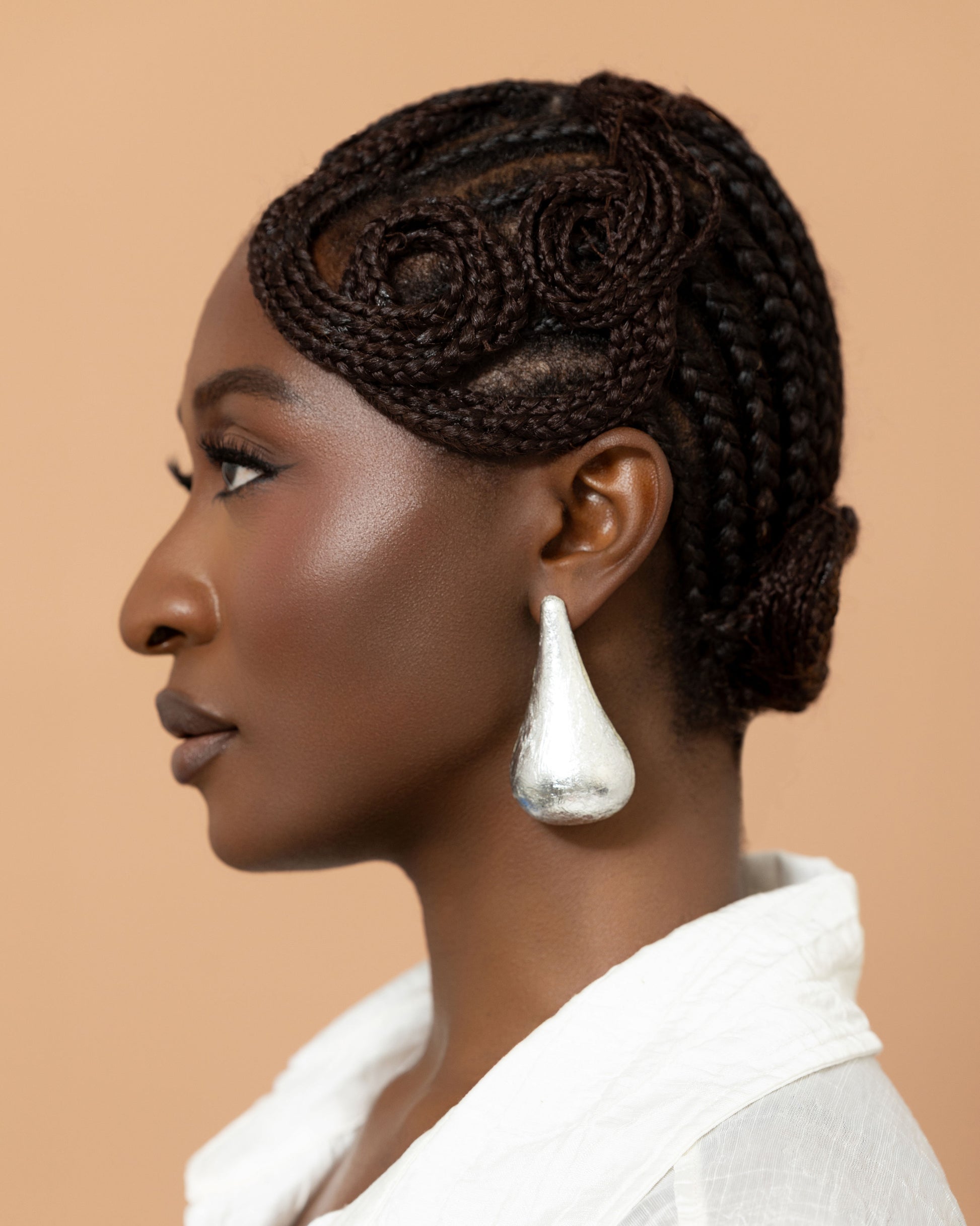 Boimle stud earrings are made of wood and silver foil. Handmade in Ghana with love.