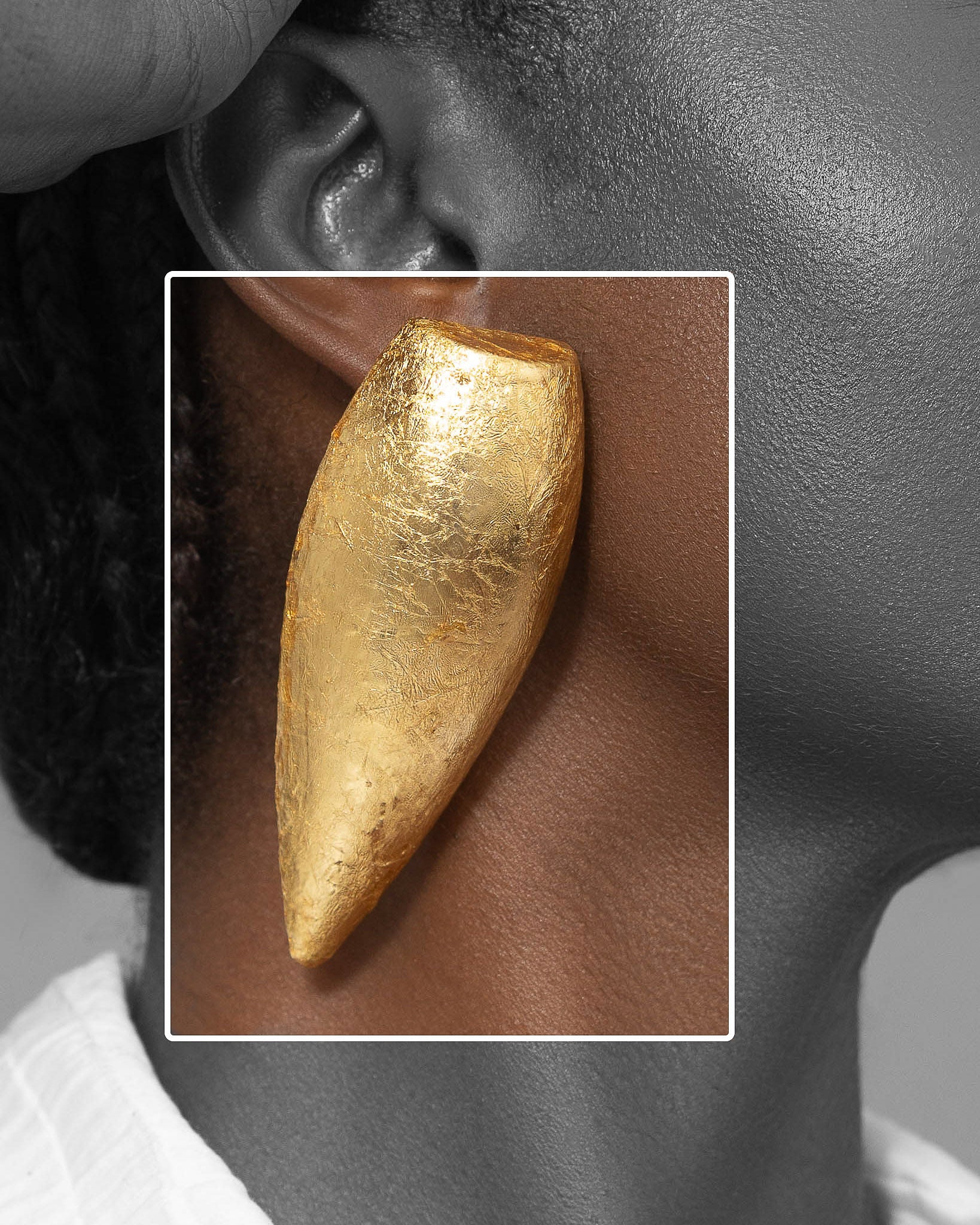Eno stud earrings are made of wood and gold foil. Handmade in Ghana with love.