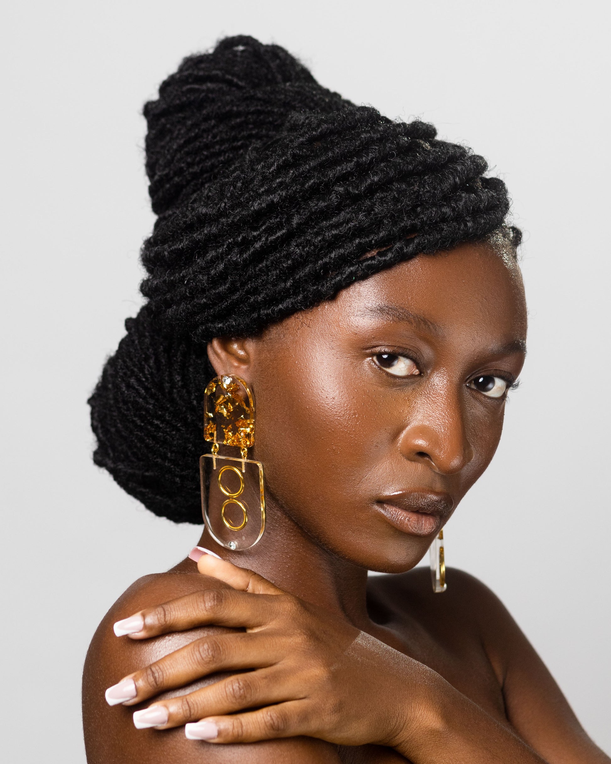 Korkor earrings are made of acrylic resin with crystal rhinestones. Statement worthy and super lightweight. Handmade in Ghana with love.