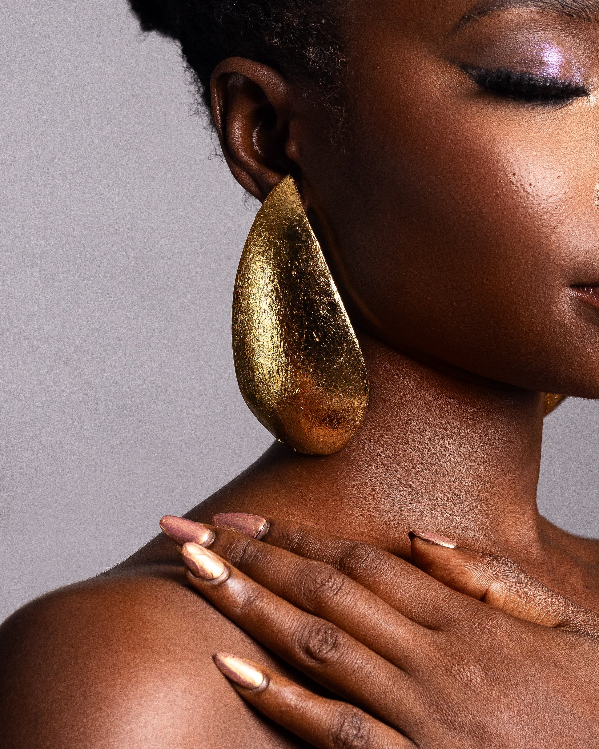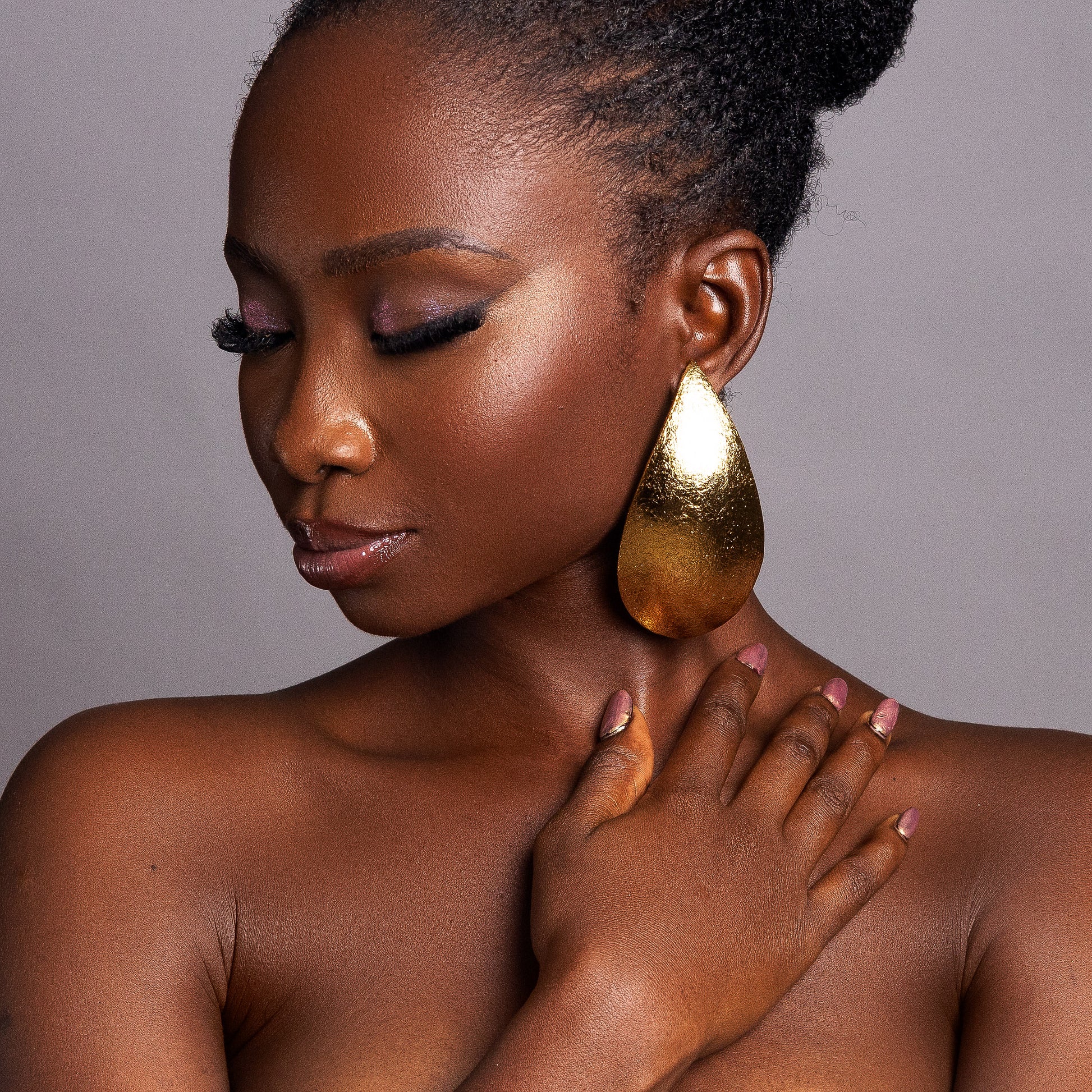 Odarkor is made of coconut shells and gold foil. Earrings are statement worthy and super light weight. Handmade in Ghana with love.Pieces are hand-creafted with the utmost care and a slight variation may exist between pieces.