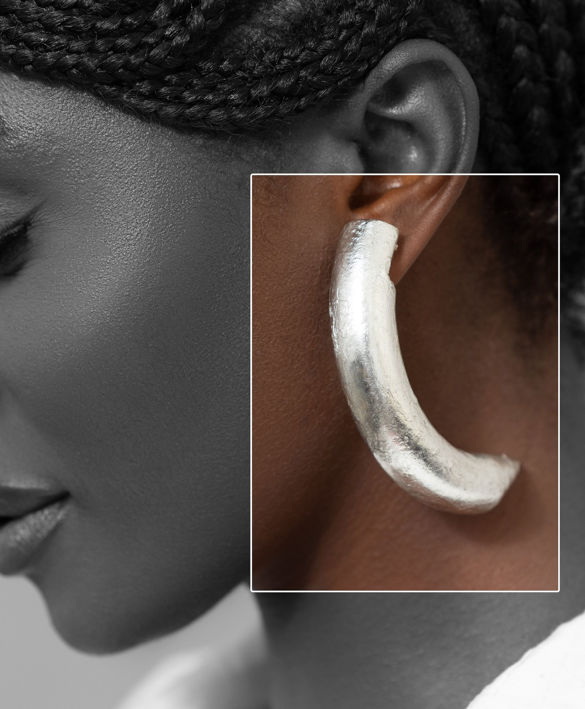 Pokua stud earrings are made of wood and silver foil. Handmade in Ghana with love.