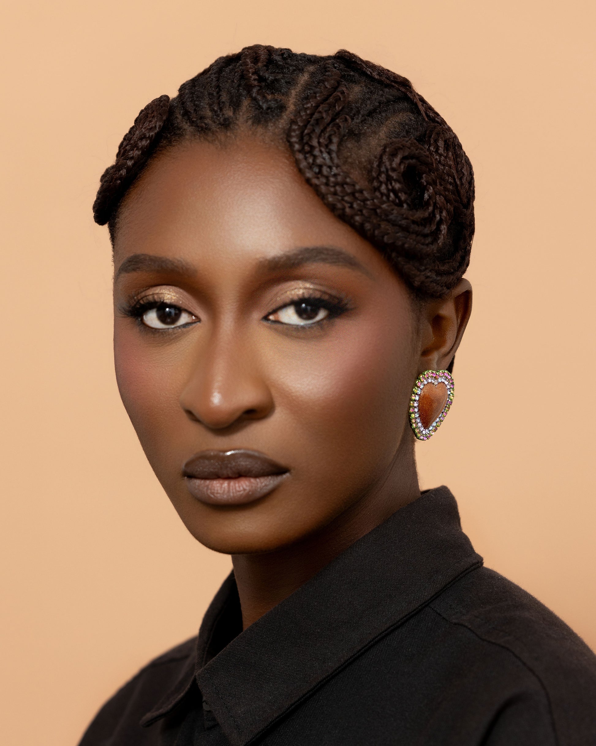 Vadea stud earrings are made of resin centered heart surrounded by crystal rhinestones. Handmade in Ghana.