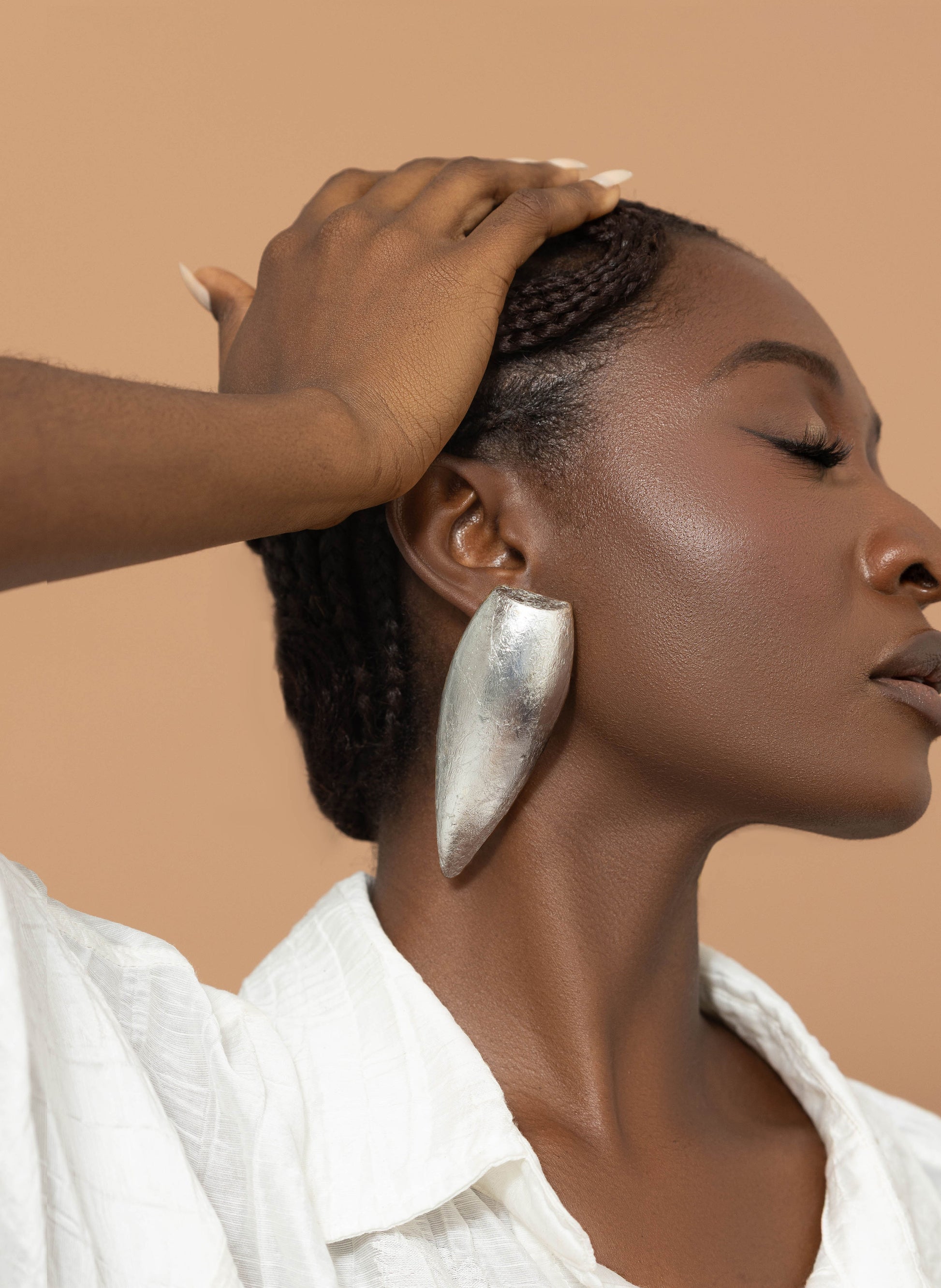 Eno stud earrings are made of wood and silver foil. Handmade in Ghana with love.